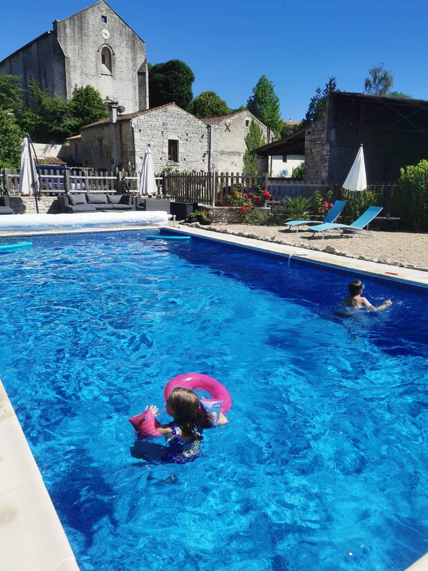There is a beautiful 10 x 5 m heated pool, with ample sunbeds and parasols for all. There is a large patio and pebbled area around the pool, with garden sofas and armchairs, a perfect place to relax, in the shade or sun.